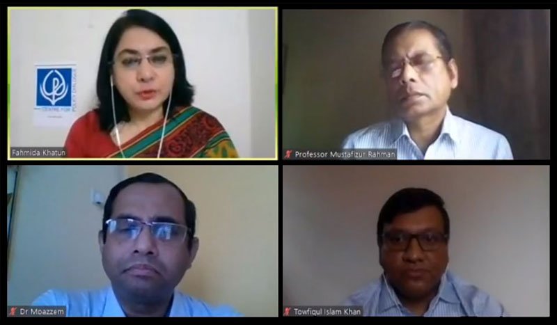 The event began with introductory remarks by Dr Fahmida Khatun, Executive Director, CPD. She noted that ensuring transparency is a must for effectiveness of the incentive programmes announced so far. She urged the government to come up with concrete allocation for the vulnerable groups so that they can survived during the COVID-19 crisis. Professor Mustafizur Rahman, Distinguished Fellow and Dr Khondaker Golam Moazzem, Research Director, CPD were also present at the event and shared their views through responding to questions from the media.