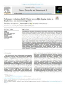 This study develops and evaluates the solar-powered electric rickshaw charging station based on experimental data and provides a detailed performance comparison of pre- and post-commissioning phase. The key areas of analysis of this study are: levelized cost of energy, payback period, and energy management. By analyzing the gaps of existing design and pre-commissioning study, this study proposes two alternative systems such as increased battery system and net metering featured system. The results indicate that the existing system achieves an LCOE of $0.2052/kWh, while generating 51.2 % excess electricity, thereby revealing significant potential for optimization. To mitigate this inefficiency, two alternative system configurations were assessed: a standalone system with expanded battery capacity (LCOE: $0.2881/kWh) and a grid-integrated net metering system (LCOE: $0.07677/kWh). As part of feasibility studies, the payback period of the base system cannot be calculated due to negative annual cash flow. Also, the alternative systems 1 and 2 offer an infeasible payback period of 53 years and 45 years respectively. Furthermore, the sensitivity analysis demonstrates that supporting ten electric rickshaws at a competitive fare could yield an annual net profit of $4,090 with a payback period of 5.5 years and the current system could generate an annual profit of $4,370, with a payback period of 6 years with higher dependency on battery storage. A comparative assessment with pre-commissioning simulation results highlights notable discrepancies between projected and actual outcomes, emphasizing the critical role of postcommissioning evaluations in accurately determining the technical and economic viability of solar-powered charging infrastructure in Bangladesh.