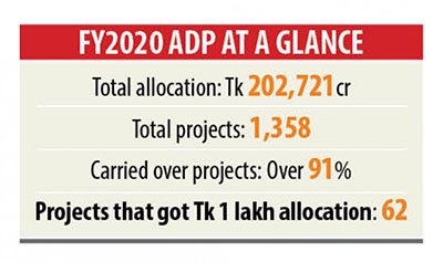 But the government has indiscriminately taken up these projects under the ADP and allocated Tk 1 lakh for each without giving consideration to their importance or deadline.